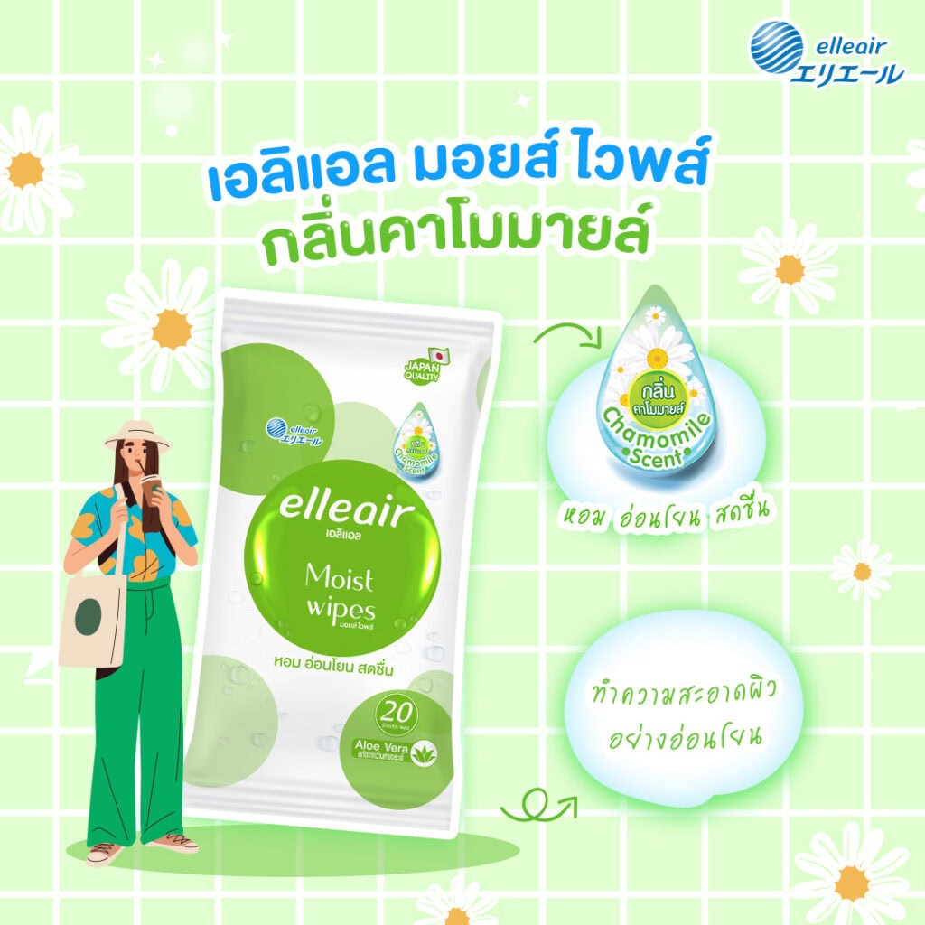 Japan Quality มาตรฐานความสะอาดแบบญี่ปุ่น สะอาด สดชื่น สัมผัสนุ่ม ไม่แสบผิว Elleair Moist Wipes – เช็ดเมื่อไหร่ ก็มั่นใจเมื่อนั้น!